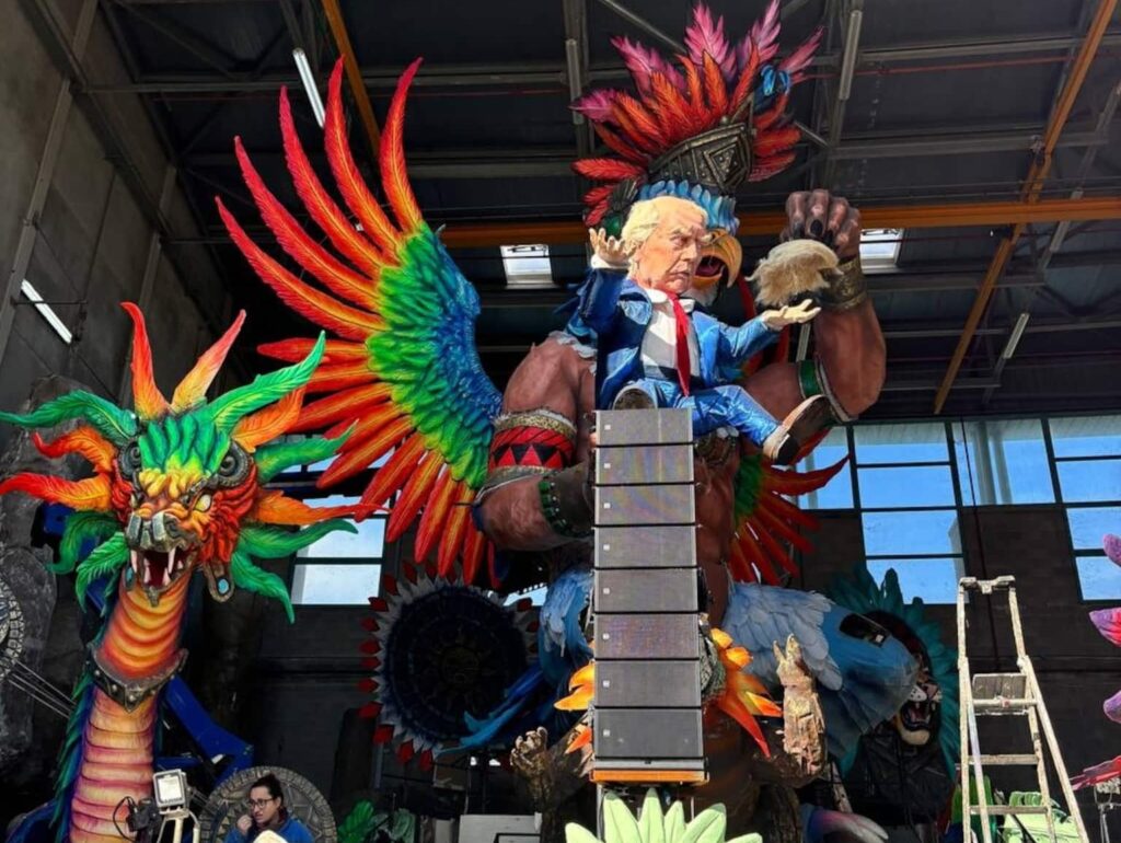 Quest’anno sono molti i carri di satira politica e tra questi ce n’è uno particolarmente attuale. “La scelta di questo carro – spiega Valentina Galli, artista e figlia di uno dei carrai più celebri di Viareggio – è stata quasi profetica. Volevamo denunciare il trattamento degli immigrati negli Stati Uniti e lo abbiamo fatto rappresentando una sorta di divinità indigena che fa lo scalpo a Donald Trump.